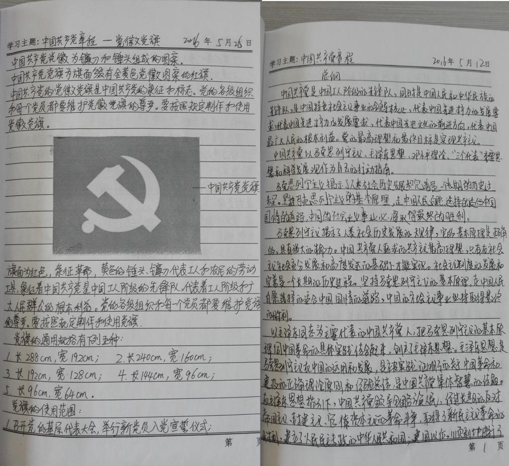 开展“两学一做”学习教育笔记评比活动,以评促学进一步激发全体党员参与“ 两学一做”学习教育的热情,并以此检查党员阶段的学习效果。本次评比活动分阶段进行,第一阶段评比已于2017年3月完成,第二阶段学习评比于5月底6月初进行,此次评比活动设立评审小组,评审组将对支部党员的“两学一做”学习笔记进行认真翻阅,按笔记内容、书写、心得体会等三个评比标准进行集体打分,并根据得分高低评选出5本优秀笔记。后期,胜出的优秀笔记将在支部内进行集中展示,供其他党员学习借鉴。