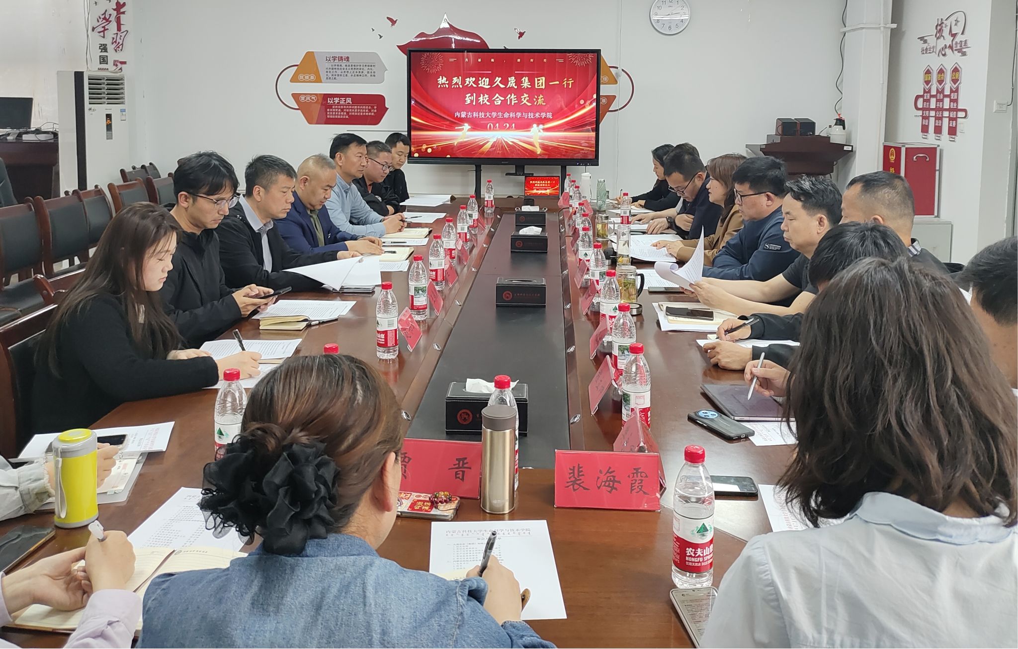 2025年4月24日,内蒙古久晟实业(集团)有限公司副总经理郭飞一行六人应邀到公司开展产学研合作交流座谈。公司领导班子、系部主任、科研团队带头人及青年教师代表参会,双方围绕技术攻关、人才共育、实践基地建设等内容展开深度交流。