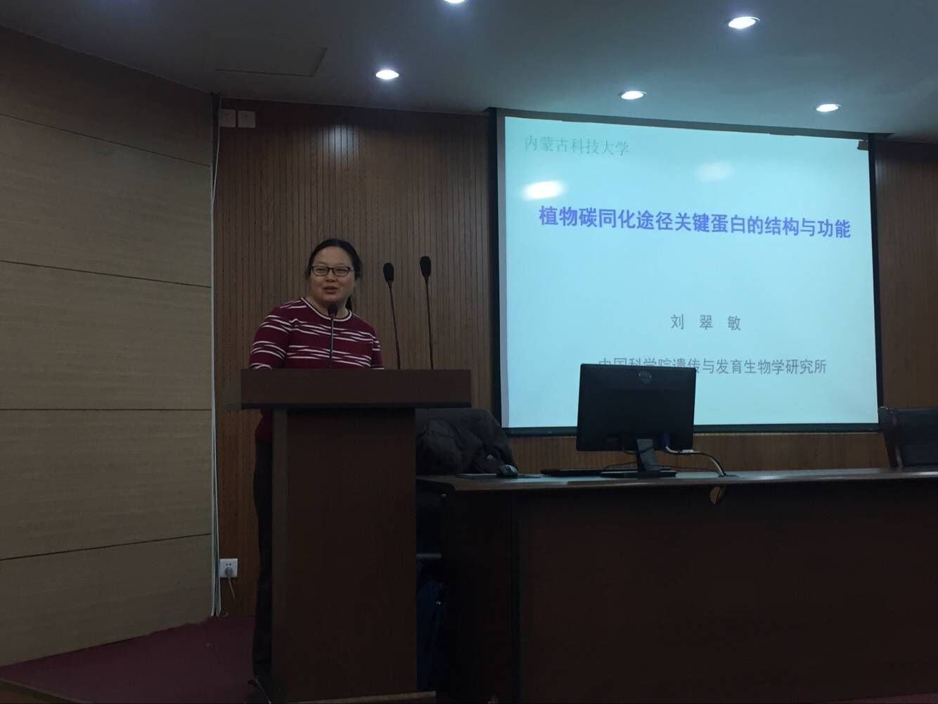为做好院2018年度国家自然科学基金项目申报工作,12月20日,公司邀请中国科公司遗传与发育生物学研究所刘翠敏研究员来公司进行了“如何撰写国家自然科学基金标书”和“植物碳同化途径关键蛋白的结构与功能”的讲座。会议由经理王国泽教授主持,全院70余名师生聆听了此次讲座。