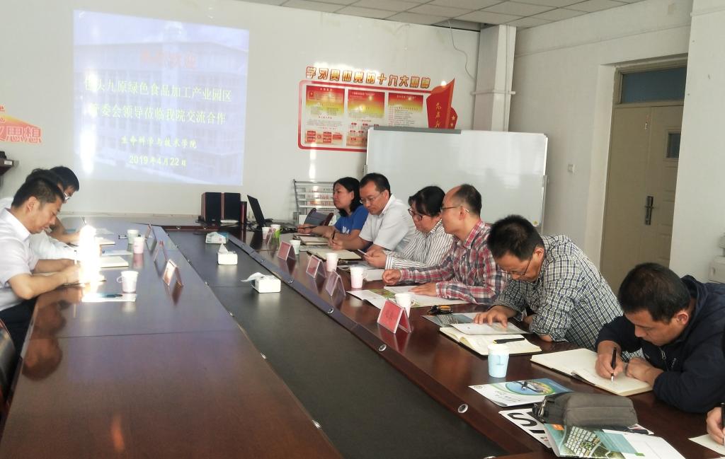 2019年4月22日下午,包头市九原区绿色食品加工产业园区管委会主任康建明、办公室主任张鹏、规划建设科科长郝斌奎等一行3人来304永利走访座谈。公司党政教领导、相关教师出席座谈会。