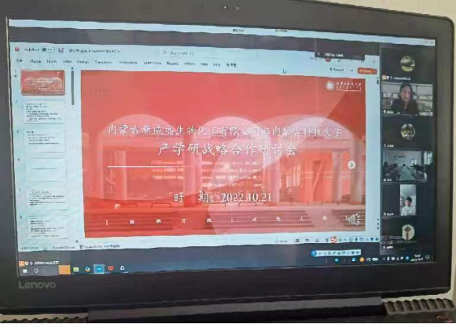 2022年10月21日,304永利与内蒙古新威远生物化工有限公司产学研战略合作研讨会在线上召开,内蒙古新威远生物化工有限公司总经理杨军强,副总经理张丽霞、吕烨等企业主要领导,公司领导班子成员王国泽、赵宏宇,生物工程专业李雅丽教授、蒋海明教授、徐永斌主任参加了会议。