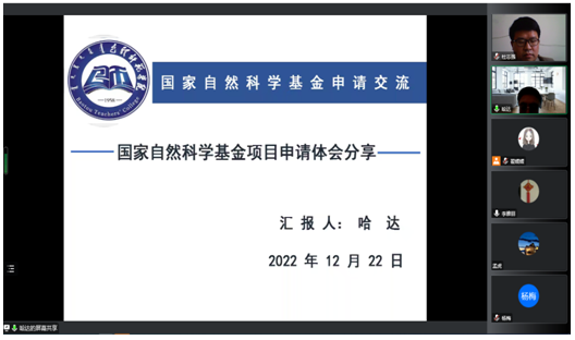 12月22日,公司邀请内蒙古老员工命科学与技术公司哈达教授作了题为《国家自然科学基金项目申请体会分享》的专题报告,报告会由杜志强副经理主持,公司及其他公司师生70余人通过腾讯会议线上聆听了报告。