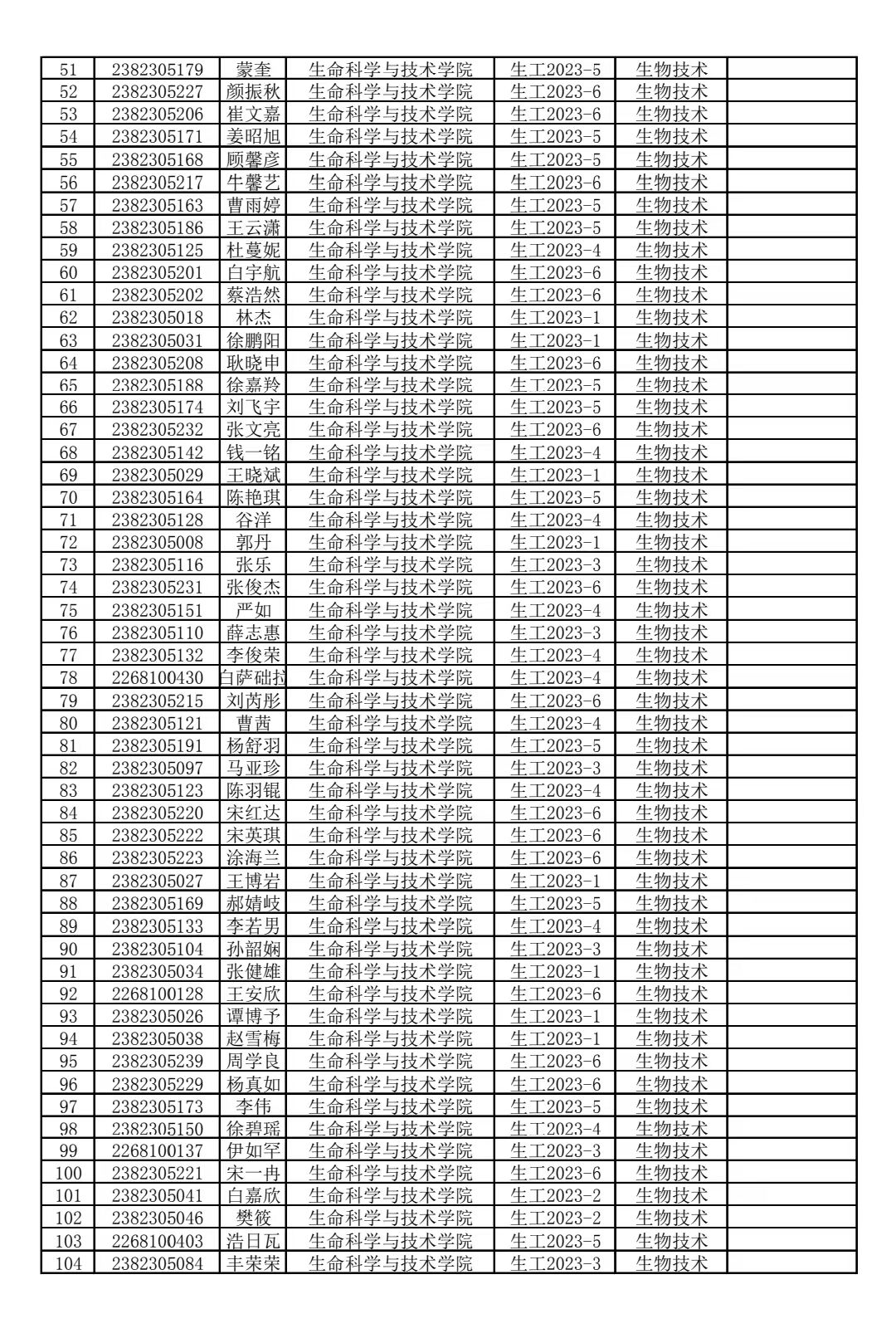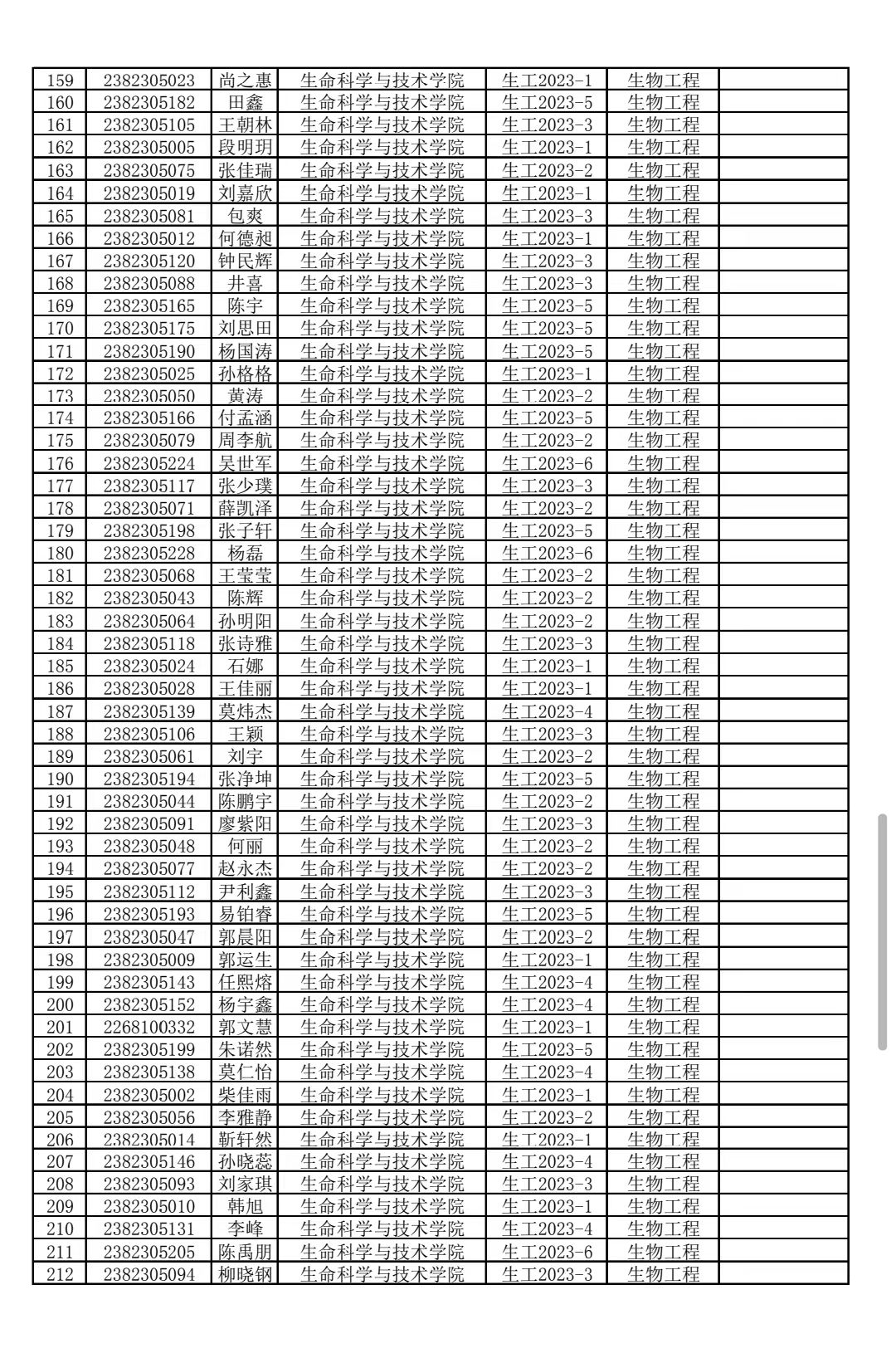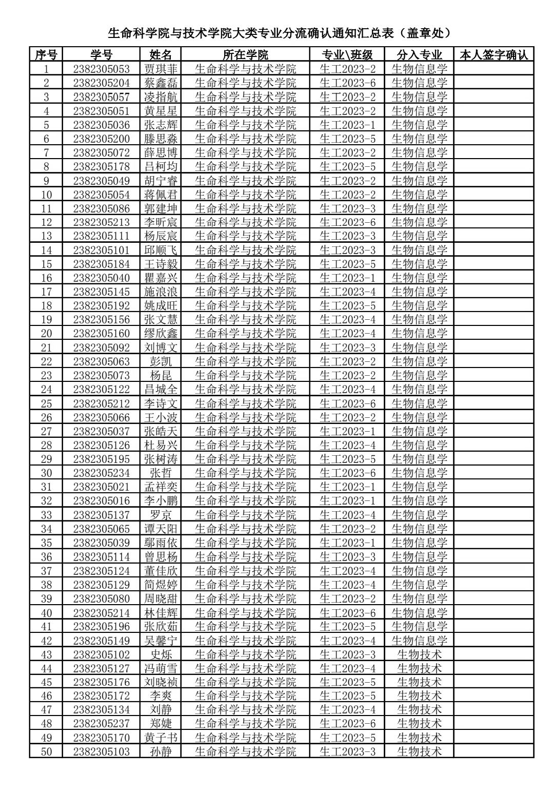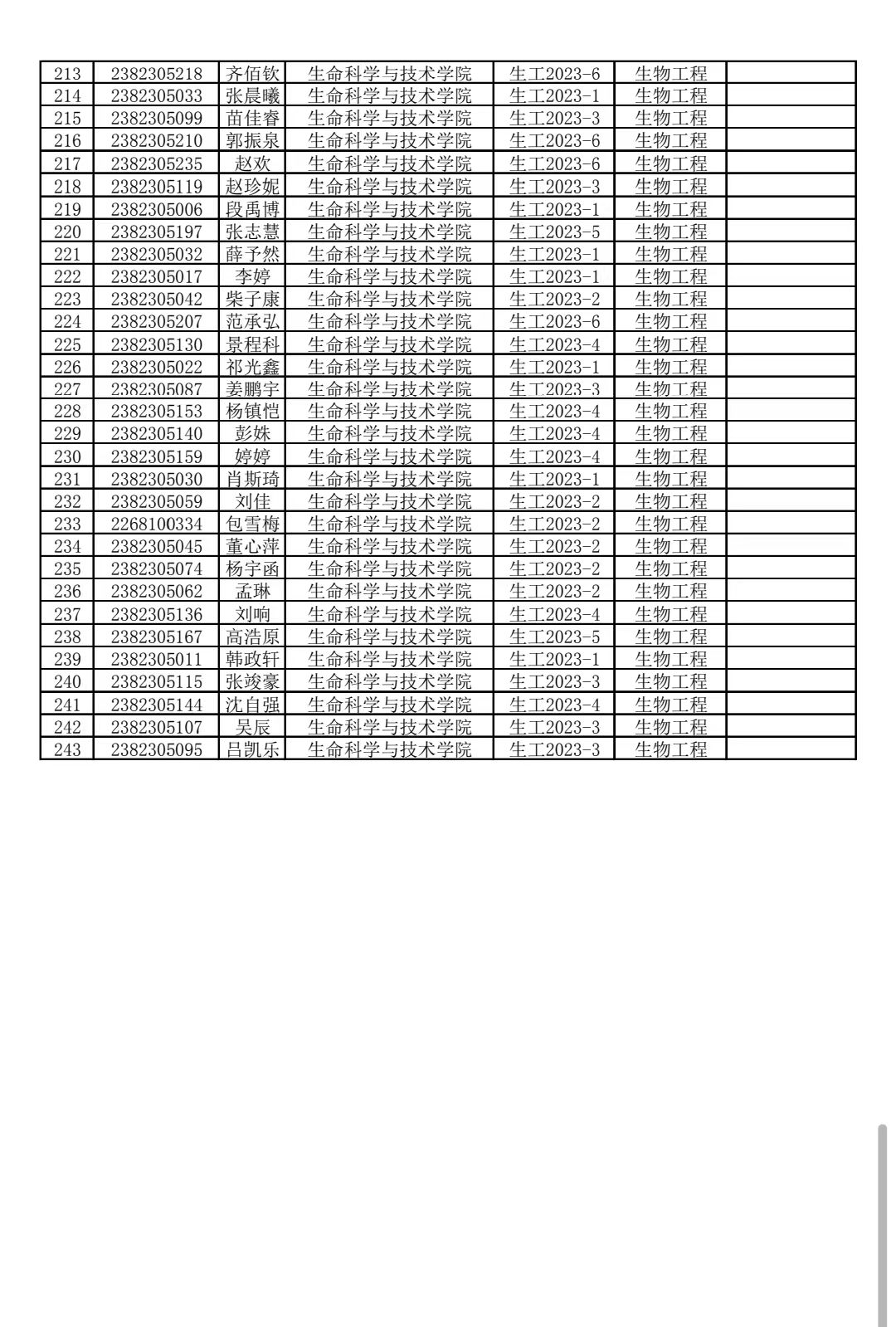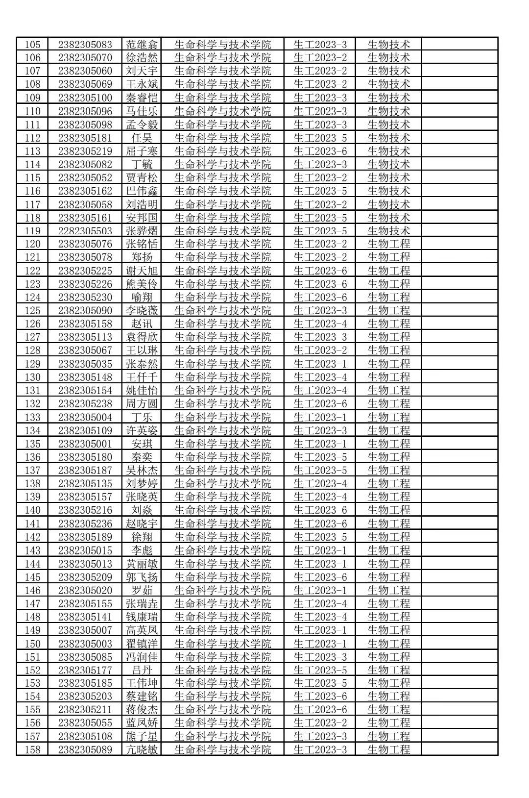 304永利2023级生物工程类专业分流结果公示